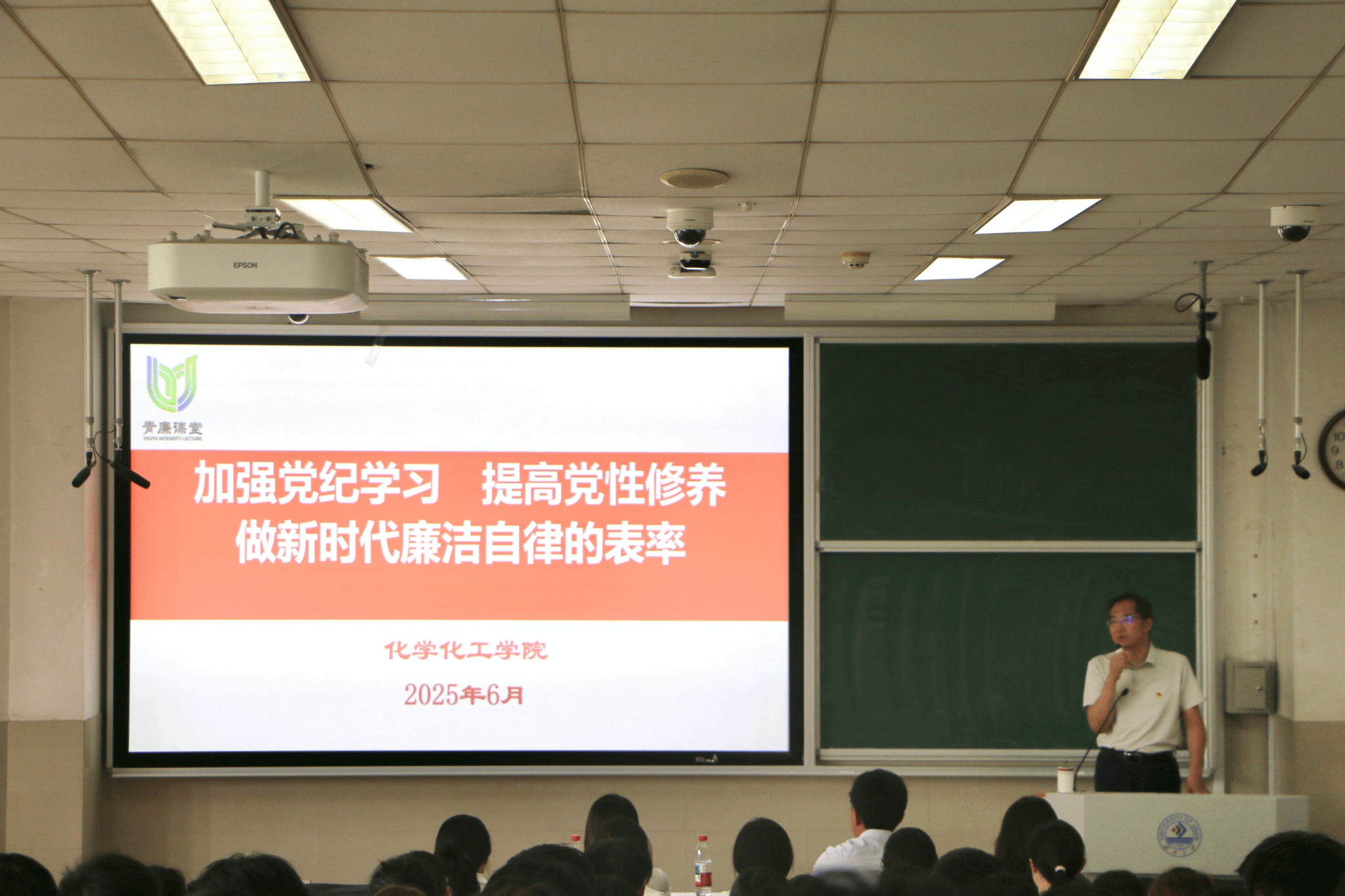 为筑牢毕业生党员廉洁自律思想防线,扣好步入社会的 “第一粒扣子”,6月10日下午,化学化工学院举行“守廉洁初心 担时代使命”党员廉政教育暨毕业生党员最后一课。学院党委书记贺铭,党委副书记、副院长白雪飞,全体辅导员及毕业生党员参加。