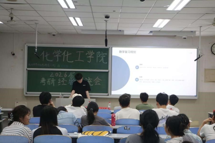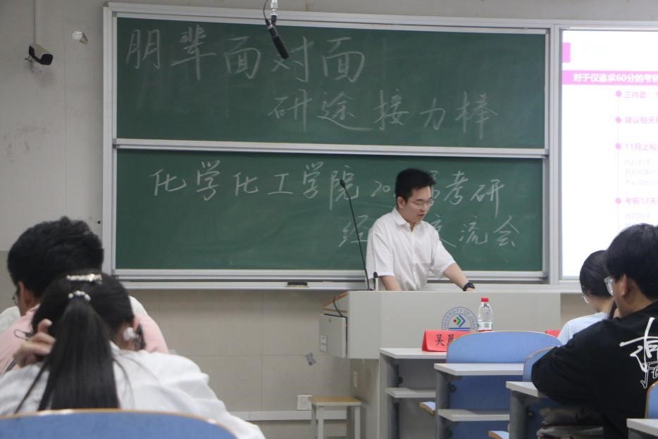 为精准指导学子把握考研动态,科学规划升学路径,5月13-14日,化学化工学院举办“朋辈面对面·研途接力棒”考研经验交流会。活动邀请2025届十余名考研优秀学生代表,围绕院校选择、备考策略、能力提升等模块进行系统分享。