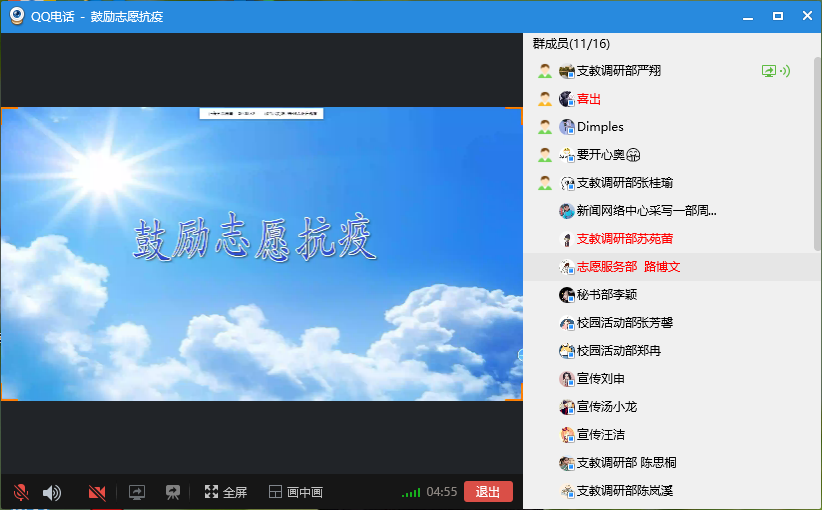 为进一步夯实青年志愿服务的发展基础,提高学生参加抗疫志愿活动的积极性,鼓励更多的同学参加抗疫活动,济南大学心连心爱心社在5月4日晚上七点通过线上会议的形式举办了以“鼓励志愿抗疫”为主题的活动,心连心爱心社的部分成员参加了此次活动。