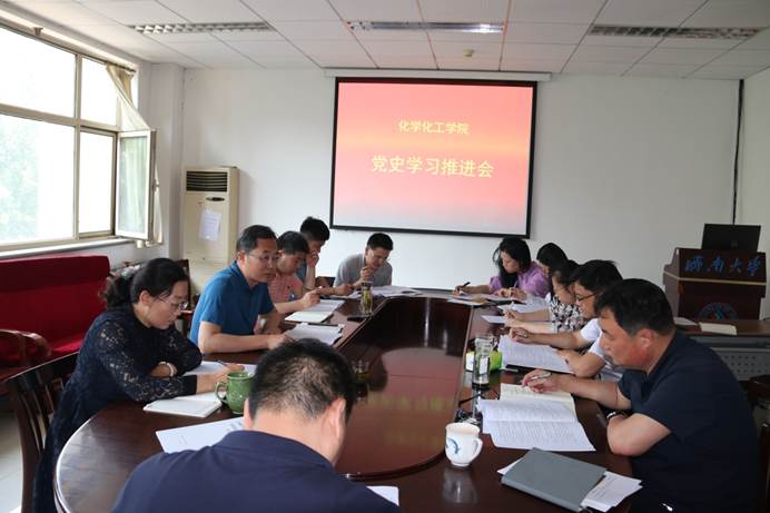根据学院党史学习计划安排,2021年6月4日上午,化学化工学院在逸夫楼A314召开学院党史学习推进会,对学院党史学习情况进行了再推进、再部署。会议由学院党委贺铭书记主持,学院党委班子成员、各教工党支部书记以及学生支部代表参加。会上,贺铭书记传达了学校党史推进会的主要精神,对学院各支部党史学习情况进行了具体部署,对学院师生学习党史提出了具体要求, 划定了时间节点,为全院师生学习党史工作指明了方向。