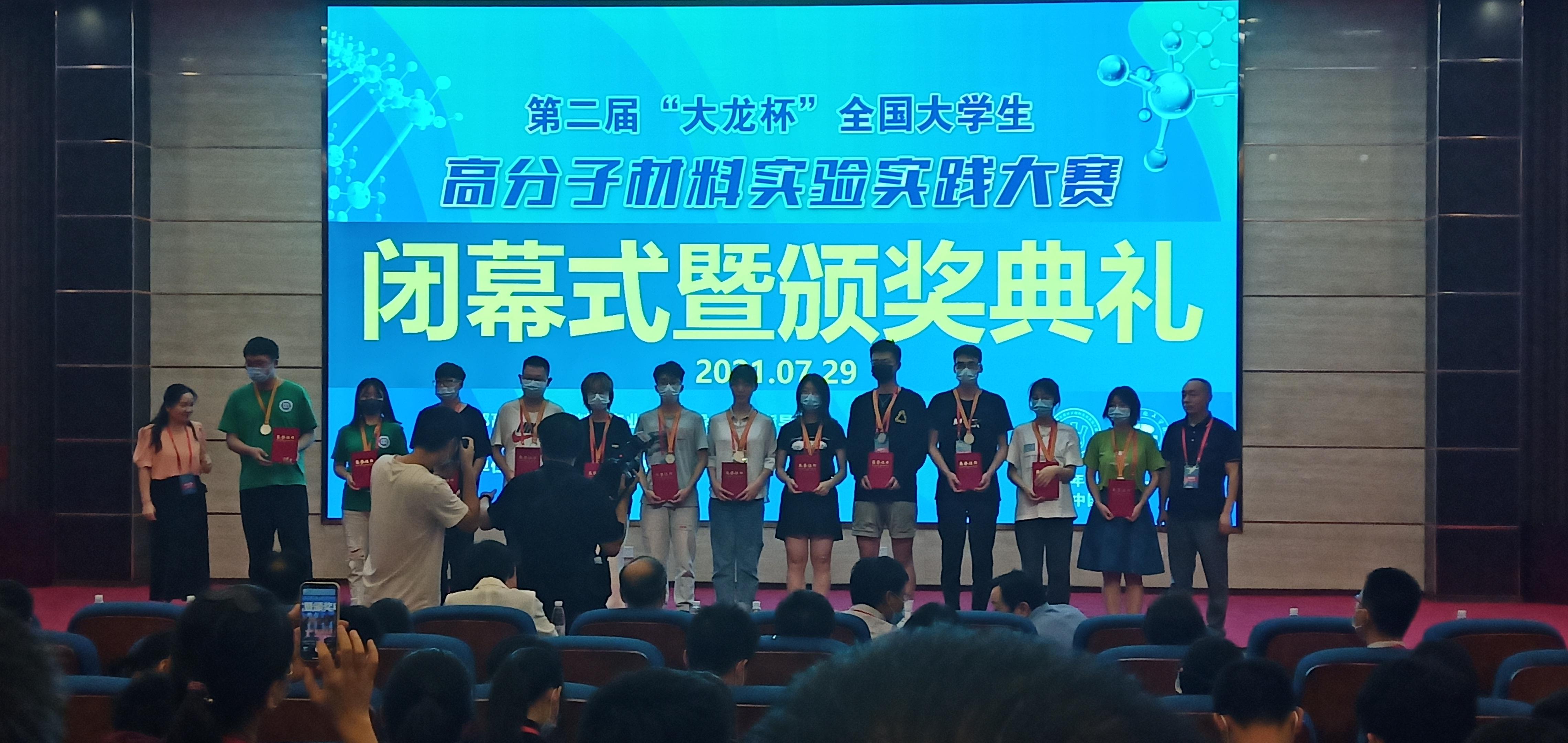 2021年7月26日至29日,由教育部高等学校材料类专业教学指导委员会主办、北京石油化工学院承办的第二届“大龙杯”全国大学生高分子材料实验实践大赛(简称“双实”大赛)在北京石油化工学院举办。大赛吸引了四川大学、天津大学、华南理工大学、东华大学、大连理工大学、北京化工大学等43所高分子材料与工程专业的300余名师生参赛。我校化学化工学院高分子材料与工程专业2019级三名学子在决赛中成绩优异,杨子壮同学获得个人一等奖(最高奖),李岩和李振浩两同学分获个人二等奖;我校首次参赛即以总分第二名成绩荣获团体二等奖。
