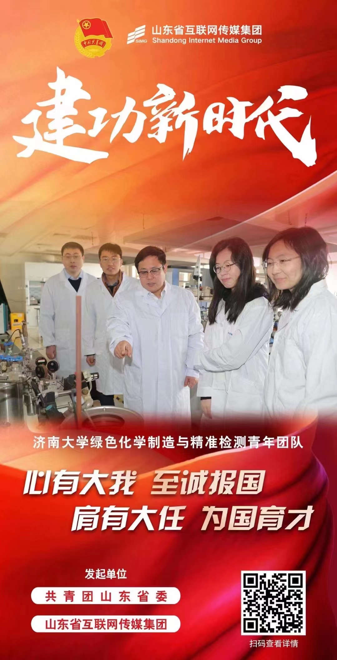 中国共青团成立100周年之际,团省委、省青联在全省部署开展“山东青年创新突击队”“山东青年创新榜样”推选工作,旨在挖掘、宣传、展示全省各行业各领域勇于创新、敢为人先的优秀青年典型,更好激发山东青年的创新智慧、创业激情和创优动力。济南大学绿色化学制造与精准检测青年团队在推选中脱颖而出,被授予“山东青年创新突击队”称号。