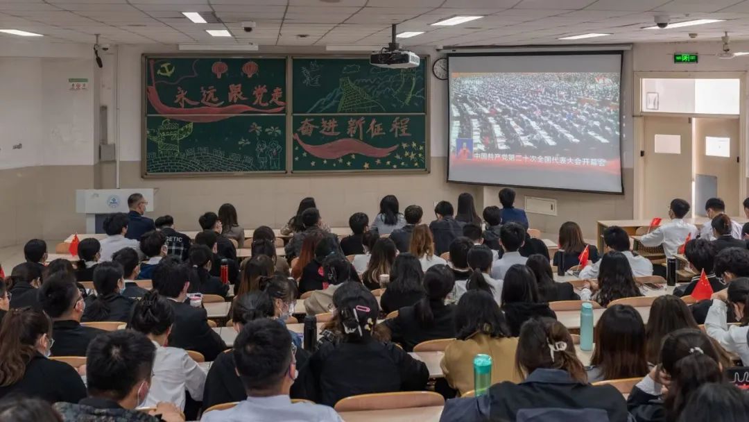 青春向党喜迎二十大,师生携手共进新征程。2022年10月16日,中国共产党第二十次全国代表大会在北京隆重召开。上午10时,化学化工学院广大师生以昂扬的精神风貌和饱满的热情,集中收看党的二十大开幕盛况,学习领会大会精神。