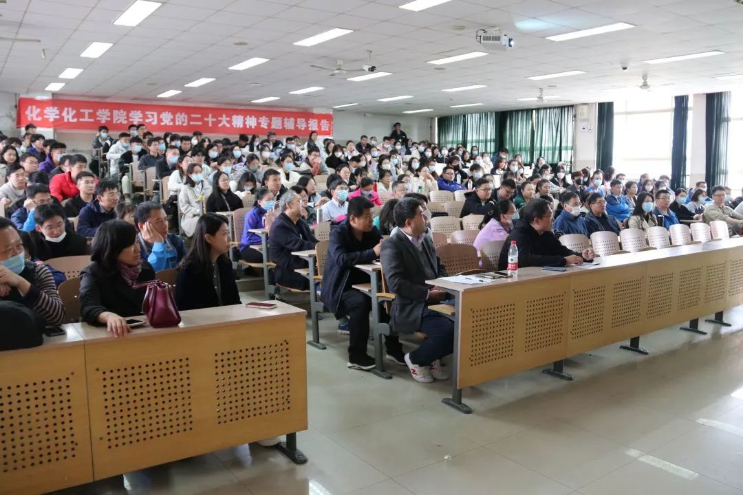 学习二十大,永远跟党走,奋进新征程。为深入学习领会、全面贯彻落实党的二十大精神,化学化工学院于10月28日在第十一教学楼六段502教室召开学习党的二十大精神专题辅导报告会。