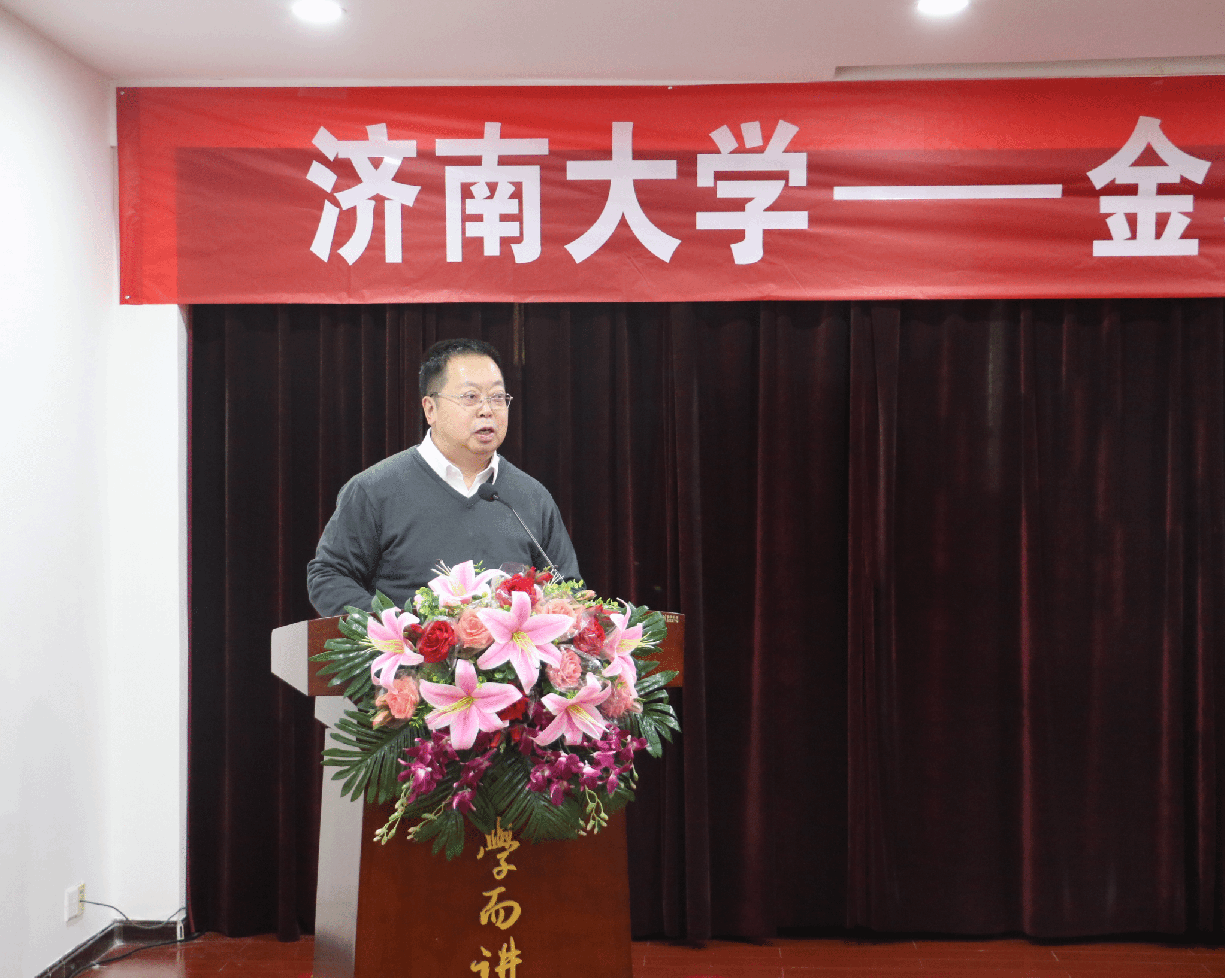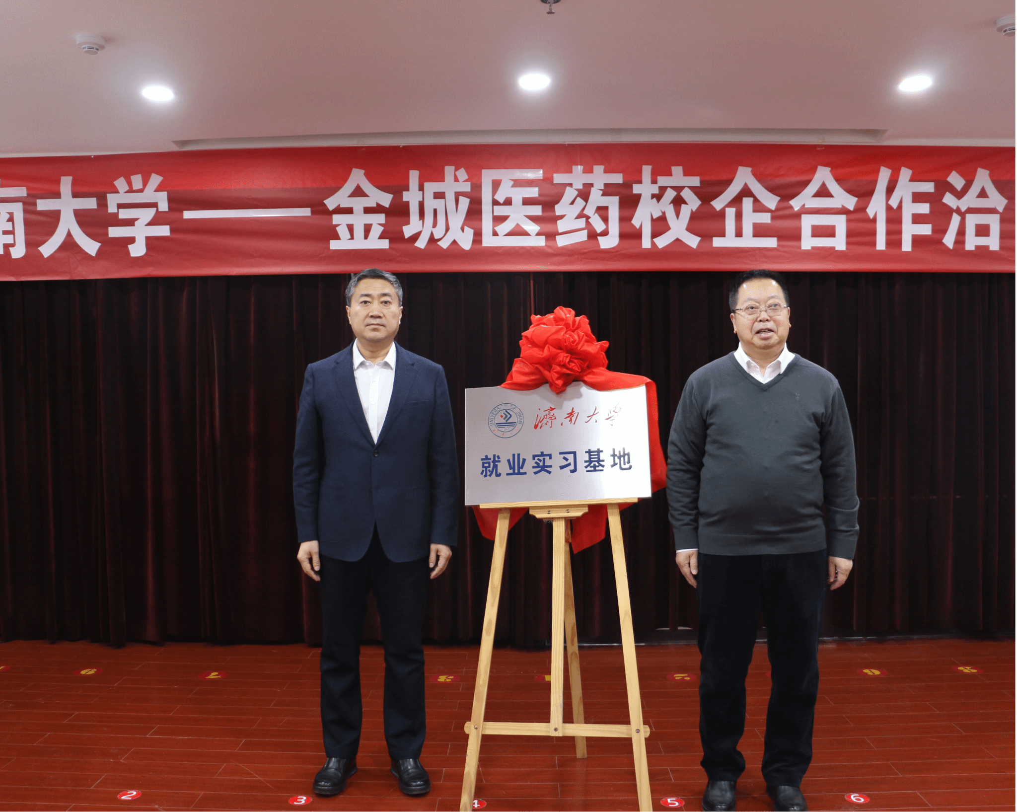 刘宗明校长对金城医药集团的信任与支持表示衷心的感谢,就学校发展、人才培养、师资队伍、学科建设、科学研究等情况做了详细介绍,同时就下一步人才引育共享、产学研转化、毕业生就业等合作领域与企业深入交流。他表示,就业是民生之本,济南大学与金城医药集团交流密切、互动频繁,双方有着良好的合作基础和深厚的感情认同,希望以此次就业实习基地的揭牌为契机,进一步发挥基地优势和育人效能,打造引育共享、人才培养、合作研究的平台,形成校企双方良性互动,实现互利共赢。