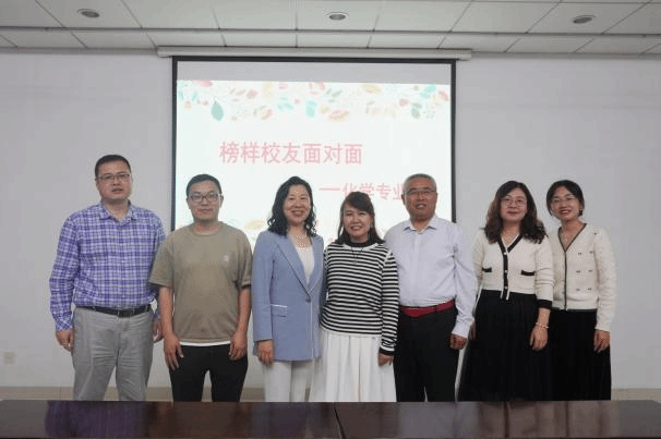 4月20日下午,化学化工学院举办化学专业“榜样—校友面对面”活动,化学专业优秀校友济南新航实验外国语学校马立霞老师和山东第一医科大学药学院(药物研究所)白著双副研究员受邀做报告。校友代表和化学专业师生代表参加活动。