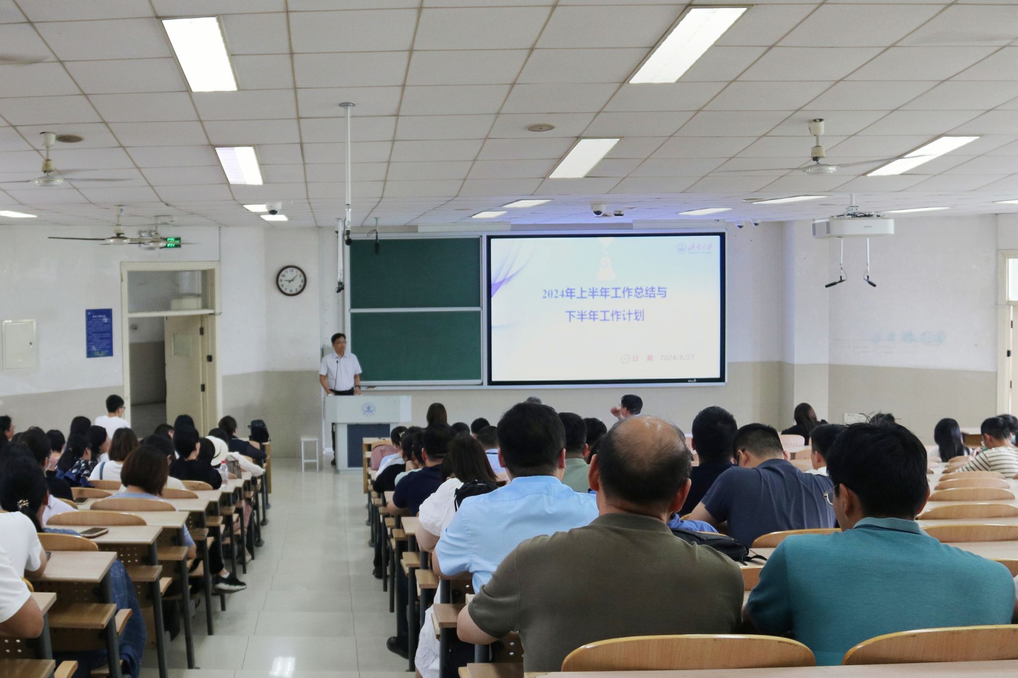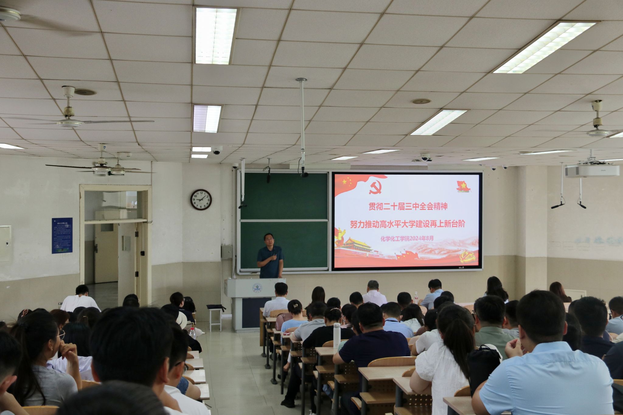 8月27日,化学化工学院召开新学期全体教职工大会,传达学习学校四届五次全委会扩大会议精神,部署学院各项工作。学院班子成员、全体教职工参加会议,会议由学院党委书记贺铭主持。
