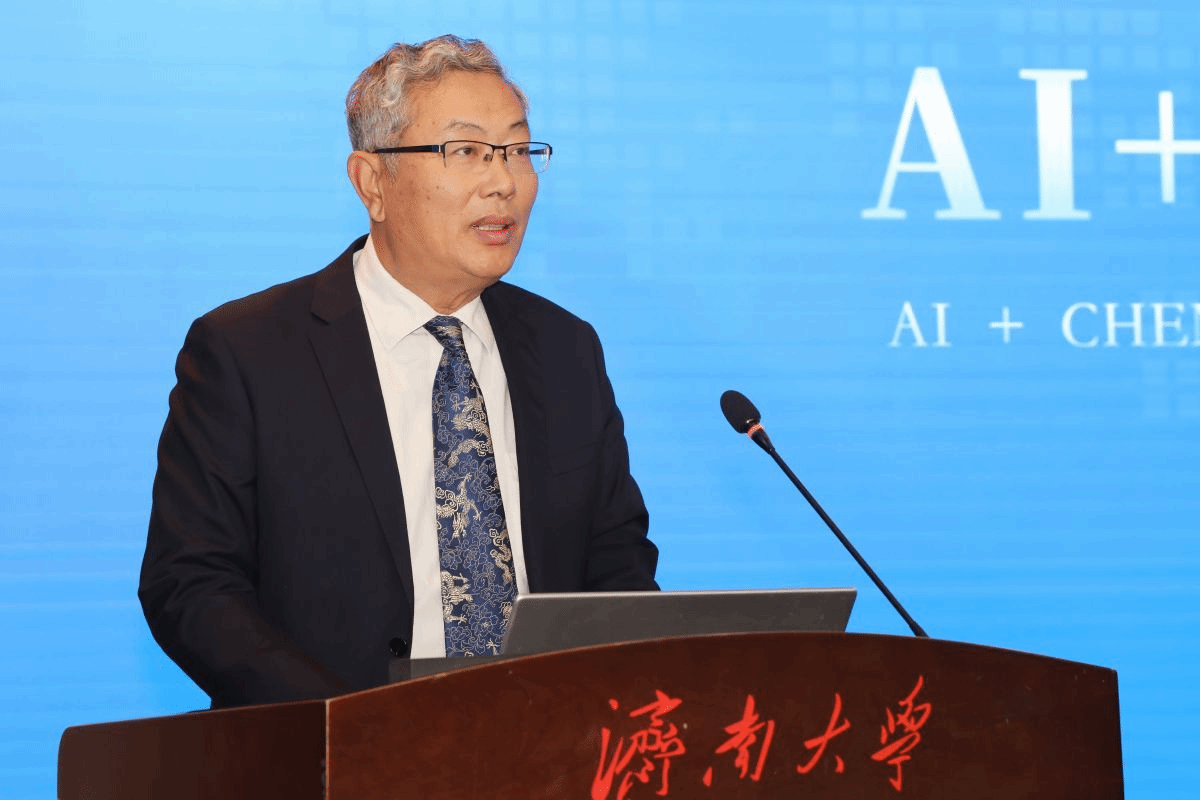 刘宗明校长在致辞中首先向参会的领导、专家表示热烈欢迎,并介绍了我校和化学化工学院近年来在学科建设、科学研究、人才培养、国际合作等方面取得的成绩,对各位领导和专家长期以来给予学校的关心、支持和帮助表示衷心感谢。他指出,当前AI技术深度赋能科学研究,带来科研范式和产业形态的新变革,只有大力发展AI技术,推动AI与各学科深度融合,加快形成新质生产力,才能在新一轮国际科技竞争中掌握主导权,才能为推进中国式现代化提供更加有力的支撑。他强调,学校将发挥自身在AI与各学科的协同优势,借助本次会议为我省本领域产学研单位搭建起与海内外高层次人才交流合作的平台,与专家学者、行业精英共同探索AI时代下的化学前沿,提升省内高校化学、材料领域研究学者的AI素养。希望与会专家学者广泛交流,激发灵感,促进学术交流和科技合作,为加快打造我省AI+科技创新重要策源地,服务黄河流域高质量发展做出贡献。同时,恳请各位领导、各位专家为我校化学化工等相关学科的建设多提宝贵意见,继续关心支持济南大学发展。