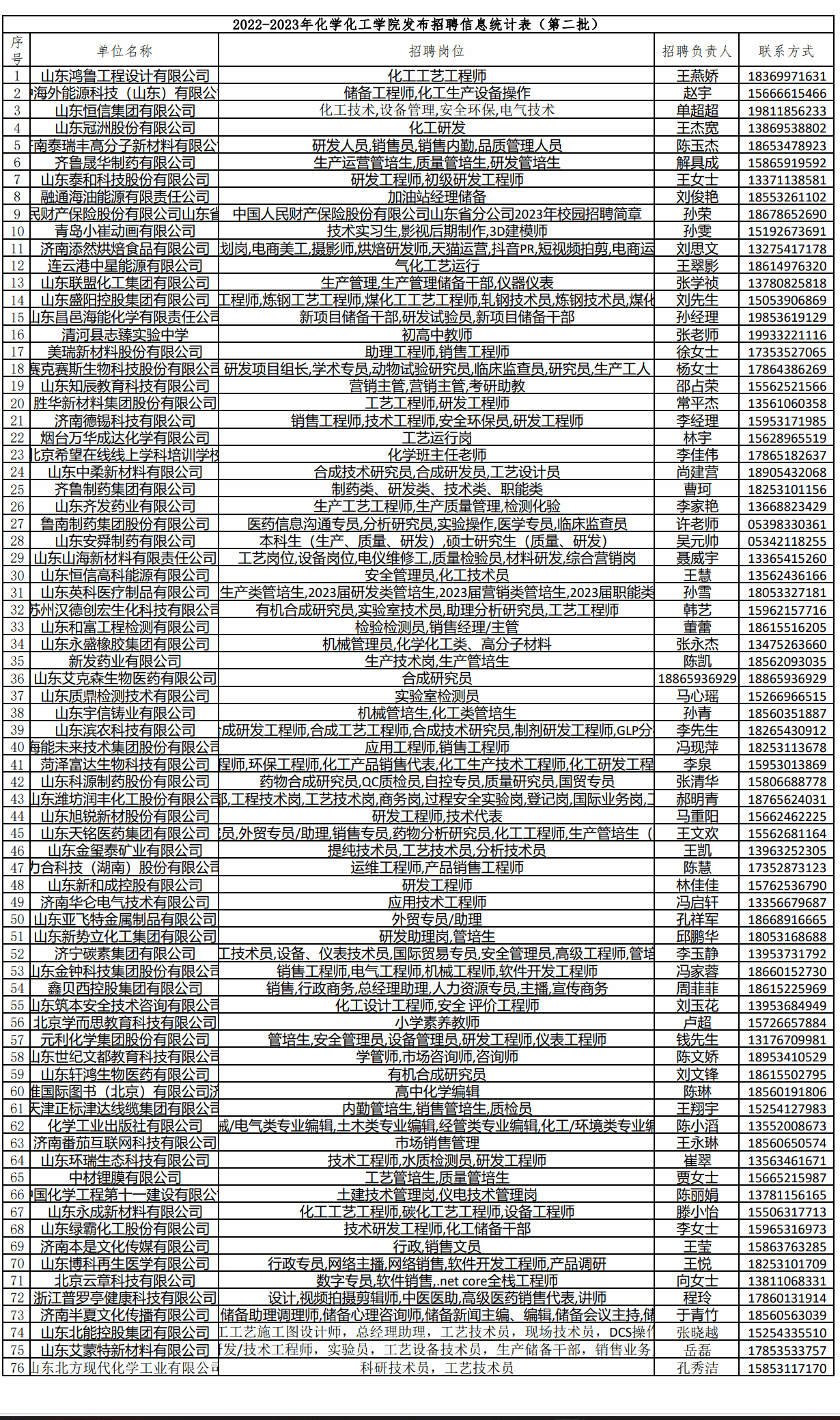 2022-2023年化学化工学院发布招聘信息统计表(第二批)