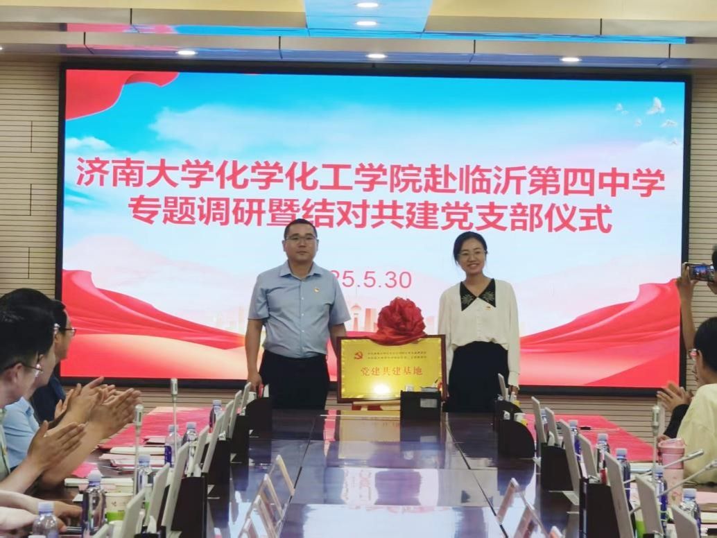 365上市公司官网化学党支部书记杨红晓与临沂第四中学西校区第二支部书记王雷共同为“党建共建基地”揭牌。两位书记分别表示将以支部共建为契机,把党建工作与教育教学、人才培养等中心工作深度融合,实现“党建引领方向,业务彰显成效”的良性循环。