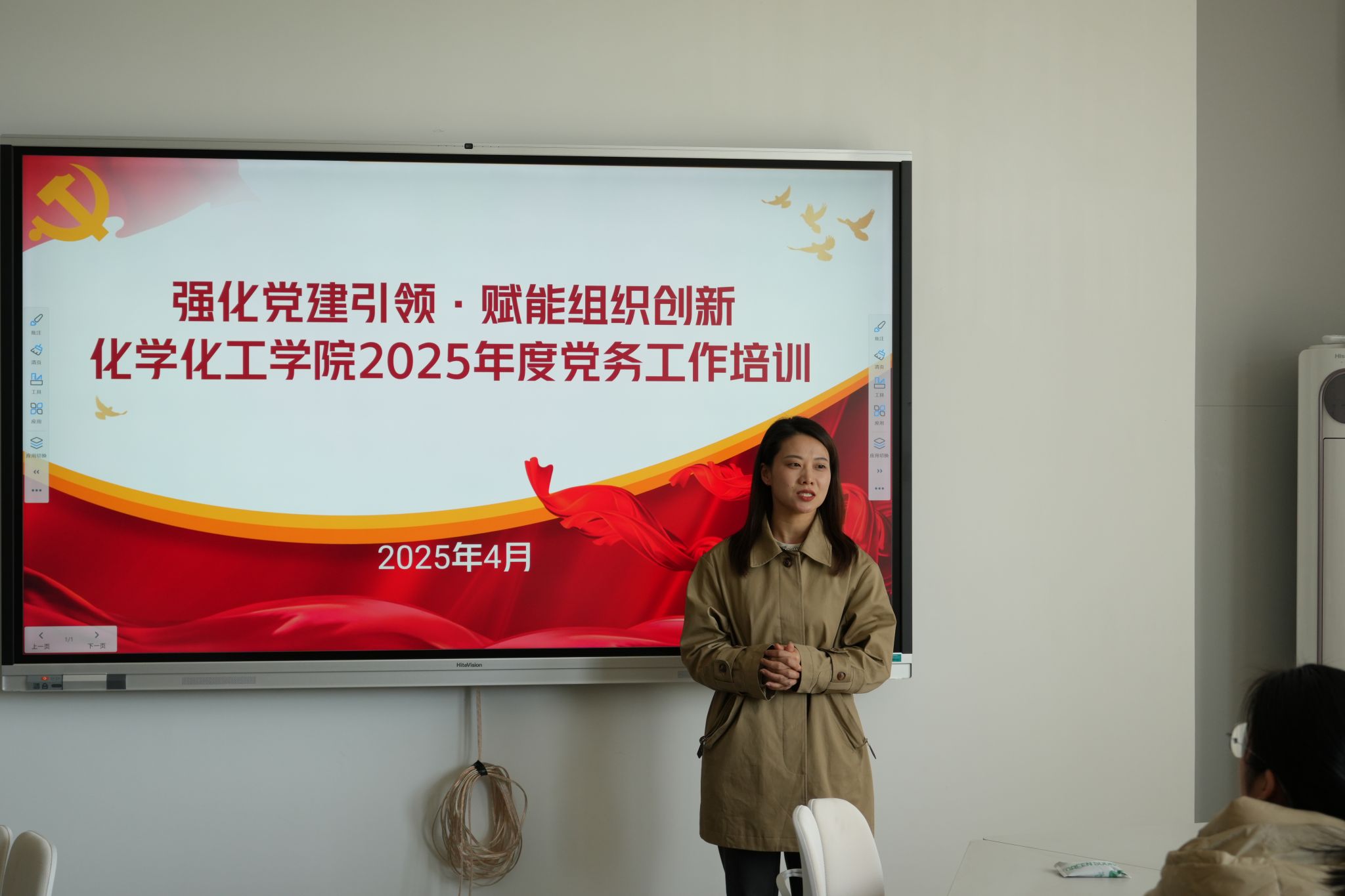 为深入贯彻落实新时代党的建设总要求,全面提升基层党务工作规范化水平,4月2日,化学化工学院组织召开2025年度“强化党建引领·赋能组织创新”党务工作专题培训会。学院学生党支部书记及支委委员等20余名党务骨干齐聚一堂,共同聆听数学科学学院组织员屈昌雷老师的专题辅导。